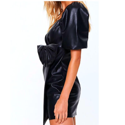 Faux Leather Black Bow Dress