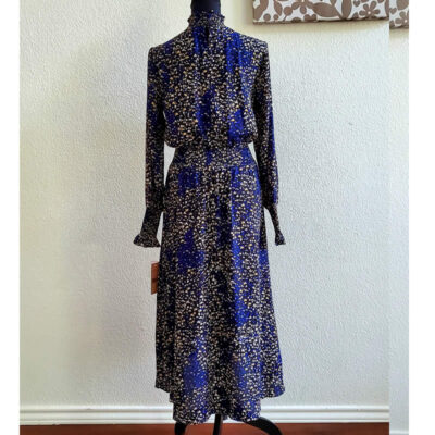 Navy Floral Mock Neck Dress