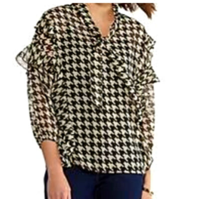 Ruffle Tie Neck Houndstooth Top
